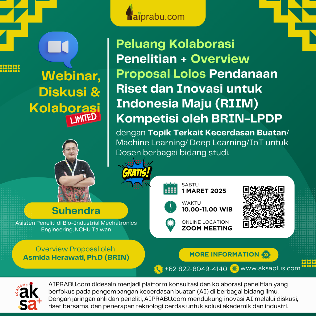 Optimalkan risetmu melalui pengembangan model kecerdasan buatan (AI) dan konsultasi langsung dengan ahli di Aiprabu.com